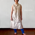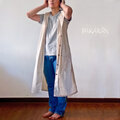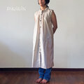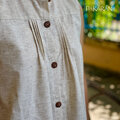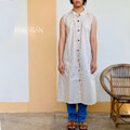 リネンコットンのシャツワンピース 春から秋まで使えるノースリーブブラウス・きなり