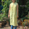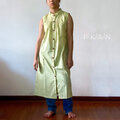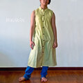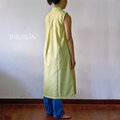 爽やかライムイエロー 春から秋まで使えるコットンリネンのノースリーブシャツワンピース