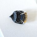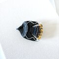 "yoru" ヨル 優しく美しい夜を呼ぶ黒とブルーの鳥さん 刺繍ブローチ