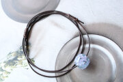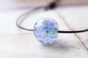 泡を入れた薄い紫色の地に、紫陽花を咲かせた小さなペンダントです。