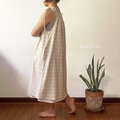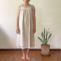表はリネンコットン、中はコットン100%の生地で重ねたダブルワンピースです。