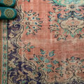 超大判 コーラルピンク 244×132 インディゴブルー トルコヴィンテージラグ