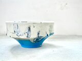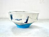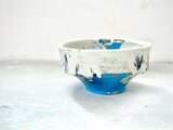 白の掛け分けの隙間から覗く水色に、ピンクのドリッピング。