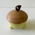 小壺型・銀彩・蓋物なんて可愛らしいフタモノなのでしょう。ひとつひとつ違っていて選ぶのも楽しかったです。 色味もカタチも木と器のコラボも最高なので、ちっちゃいけれどテーブルの主役に大抜てき!(他は何も置かない様にガンバります。) 個包装のあめちゃん10個入りました。 素敵なフタモノに、出会えて良かった! ありがとうございました。