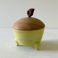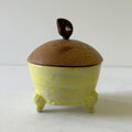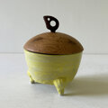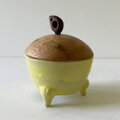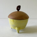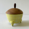 三足が付いた特徴的なフォルムに、鮮やかな黄色が眩しい器です。
