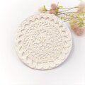 上質なレース糸で編んだ、お花モチーフの円形ドイリーです。