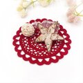 上質なレース糸で編んだ、お花モチーフの円形ドイリーです。