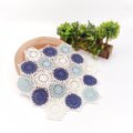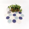 レース糸で編んだ丸いモチーフを19枚編みつなげたドイリーです。