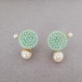 ビンテージの水色つぶつぶボタンに大小の淡水パールがリズムを作る、さわやかなイヤリングです。