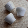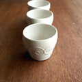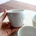 磁器土を使った作品です。細い紐状にした粘土を貼り付け模様を描きました。
