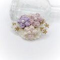 台座と小花の間に、ホワイトとゴールドのリボンをモチーフとしたレースを使用。