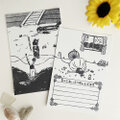 夏のポストカード8※2枚組(暑い部屋と扇風機、波打ち際の物々交換)