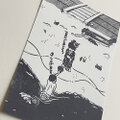 夏のじっとりとした午後と、海辺でのごあいさつ。どちらも版画ならではの味わいを残した、ゆるくて暑い夏の一コマです。
