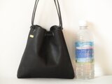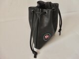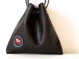 イタリア革で小ぶりの巾着袋を作りました。全て手縫いです。