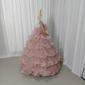 カラードレス ピンク ベアトップ フリルドレス ラッフルフリル 可愛い プリンセスライン ロング 前撮り