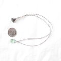 透明感があってみずみずしいグリーンフローライトにフラワー模様が入ったカレンシルバーを添えて、グレー色のポリエステルコードで繋いだ爽やかな雰囲気のペンダントです。