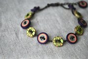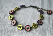 ボタンのボールチェーンブレスレット 渋色チェーン 紫・黄緑ボタン