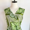 ノースリーブ カシュクールワンピース【送料込み】古布リメイク グリーン