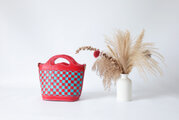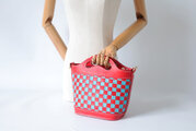 この特別な手作り牛革バッグは、ユニークなモノトーンデザインと高い品質を兼ね備えています。バッグ本体は、1.5cm幅のベージュの長い皮革ストリップ20本と黒色の短い皮革ストリップ34本を手作業で編み上げて作られました。製作時間は通常のバッグの5〜6倍を要し、その結果として非常に特別で愛らしいバスケット型の外観を実現しました。