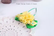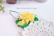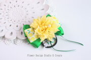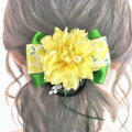 レモンイエローのダリアとレモンリボンのヘアゴム お花 ヘアゴム 髪飾り 黄緑 発表会 レモン 推し活 推し色 お花のヘアゴム