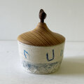小壺型・銀彩・蓋物なんて可愛らしいフタモノなのでしょう。ひとつひとつ違っていて選ぶのも楽しかったです。 色味もカタチも木と器のコラボも最高なので、ちっちゃいけれどテーブルの主役に大抜てき!(他は何も置かない様にガンバります。) 個包装のあめちゃん10個入りました。 素敵なフタモノに、出会えて良かった! ありがとうございました。