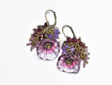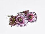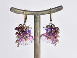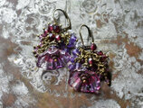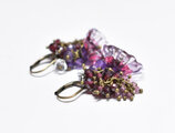 ハンドメイドフラワーとたわわなガーネット&アメジスト、クォーツのピアス