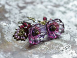 ハンドメイドフラワーとたわわなガーネット&アメジスト、クォーツを繋いだピアスです。
