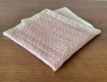届きました!あみちゃんさんのふきんは、裏の模様もとてもきれいなのでなるべく両方みえる使いかたをしています。 さて、この横長、どう使おうかな、と考えるのが又楽しいです。ありがとうございました。