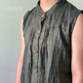 薄手リネンのノースリーブボタンシャツ・ディープフォレストグリーン