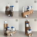 流木、ねじ・釘(赤錆加工)、ホワイトウッド(欧州スプルース、ドイツトウヒなど)、ステイン、ペンキ等で製作。ヤスリでダメージ感を演出しています。「潮騒とカモメの鳴き声、風の音」を感じていただければ幸いです。