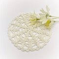 お花とリーフをイメージした、丸型のレースドイリーです.