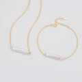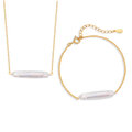 自然の個性をそのまま活かした、横長のバロックパールが印象的なネックレス&ブレスレットの2点セット。