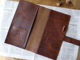 ・幅を26㎝と広めにとっておりますので、手帳やノートの他にも色々と挟んで使うことが出来ます。トラベラーズノートのリフィルなどを使い合わせることで、手帳ライフがさらに楽しくなるような作りにしております。