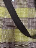 穏やかな黄緑の絹糸と茶色の綿糸で織りました。