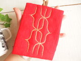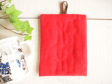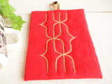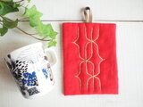 アイヌ刺繍の鍋つかみ リネンのレッド 柿渋染め