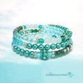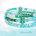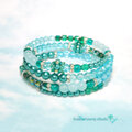 透きとおるようなブルーグリーンのビーズが連なる、爽やかな3連コイルブレスレット。