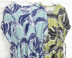 涼しげなタッチで描かれたボタニカル柄のリラックスワンピース。