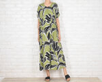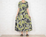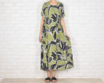 夏の大人のリラックススタイルに。涼しげなボタニカル柄ワンピース グリーン