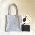 お財布、ハンカチ、スマホが入る大きさで、ちょっとお出かけに便利な大きさのトートバッグです。