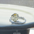 This white yellow Sapphire is set in a delicately crafted ring featuring arabesque and filigree motifs.