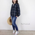 ほんのり表情のあるワッシャーブラックウォッチコットンをあわせました。