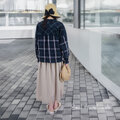 クラシカルなブラックウォッチに、ふわっと揺れる後ろ姿。