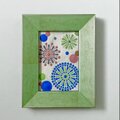 クリーム色の和紙にくすみ系カラーを使ってドットマンダラを描いています。
