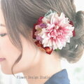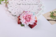 浴衣・着物髪飾りに♡ピンクのダリアの和風ヘアクリップ 和風 浴衣 七五三 浴衣髪飾り ヘアクリップ バラ ミント 着物柄 髪飾り