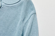 ★ラウンドネックに三つボタンをあしらいました。さらにネックラインはくるんと巻いて、立体感をプラスしています。