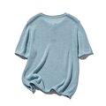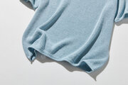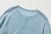 和紙糸のさらり着心地♡立体ネックラインが映える 半袖ニット 青 250607-2