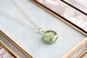 滲んだ濃淡ある緑色に控えめに置かれたラメがなんともいえず上品なペンダント。