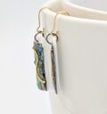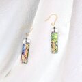 虹色螺鈿とメタルスティックの短冊のピアス イヤリング 【2226】ピアス 和 伝統工芸 #シェル