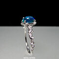 鮮やかな色彩をもったブラックオパールを、唐草の細身のリングにセットしました。