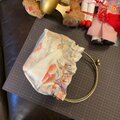 名古屋帯リメイクのサッシュベルトとハンドバッグ。